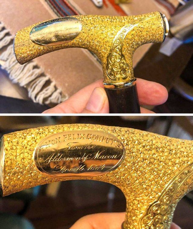 "在我家附近的gw买的这根1884年的拐杖,5.99美元."