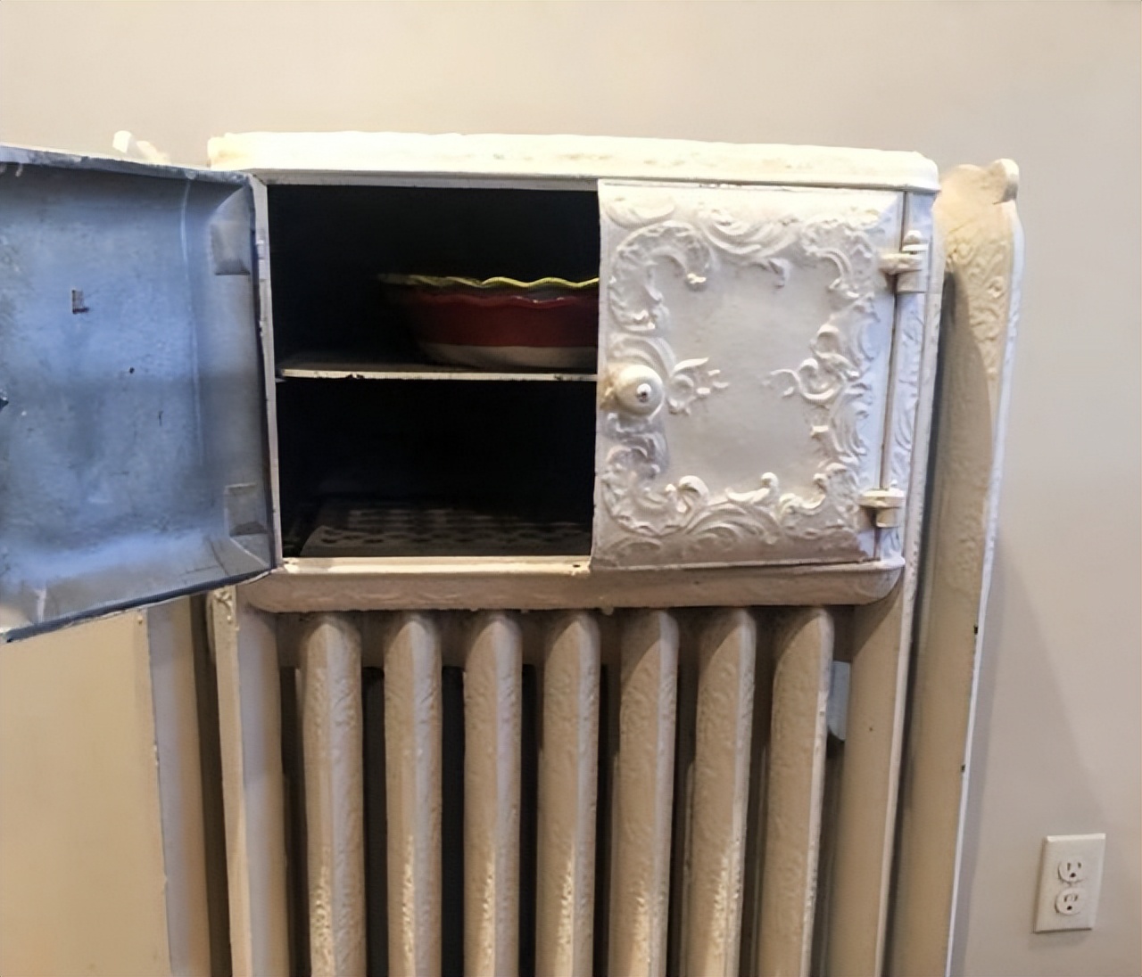 "维多利亚时代的铸铁暖气片,带食物加热器."