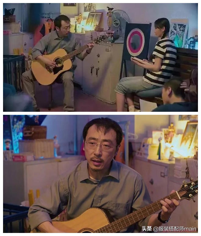 剧中他弹唱甲壳虫乐队的《yesterday》帮学生练英语口音,其实,这首歌也是他年轻时最喜欢的。