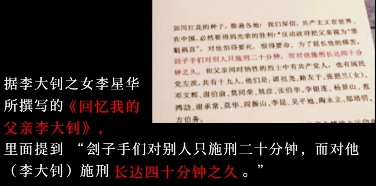 在狱中的22天里,李大钊被施以电椅、老虎凳、拔指甲、竹签插手指等等残忍酷刑。纵然遭受了身心的巨大折磨,李大钊也只承认自己是马克思学说的崇信者,闭口不谈中国共产党的机密内容。