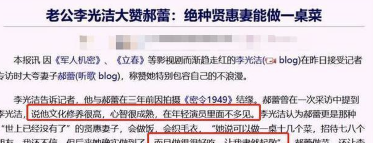 而李光洁则认为郝蕾是绝世贤妻。