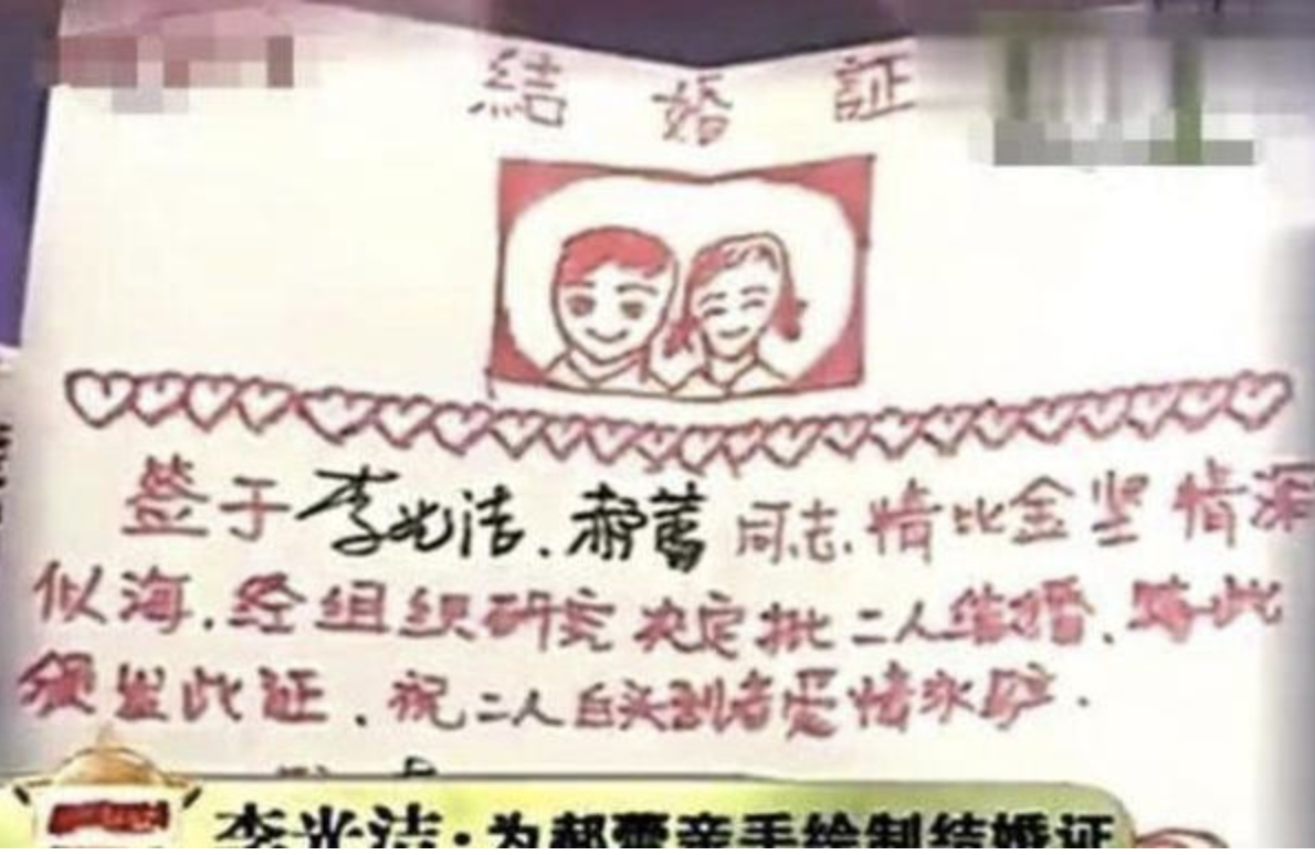 这段感情,怎么看都是浪漫至极。李光洁求婚的时候,亲手绘制了一张结婚证。