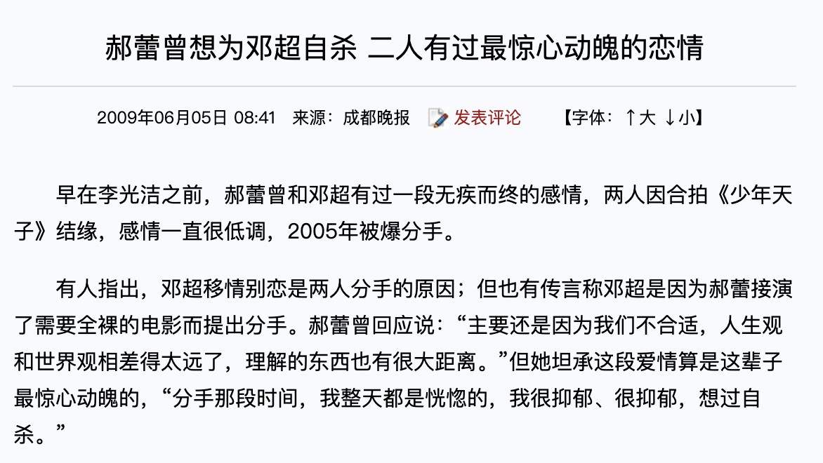 这个传言,一传就是10年。2016年,一篇《难怪郝蕾一直不肯原谅邓超,两人分手还有这样难堪的内幕》文章在网上引发热议。