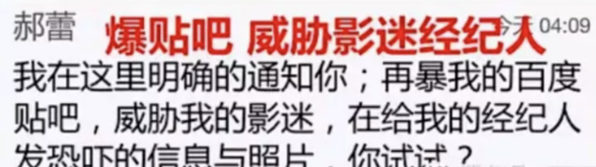 更可怕的是,郝蕾的影迷被威胁,经纪人被恐吓,账号被曝光。