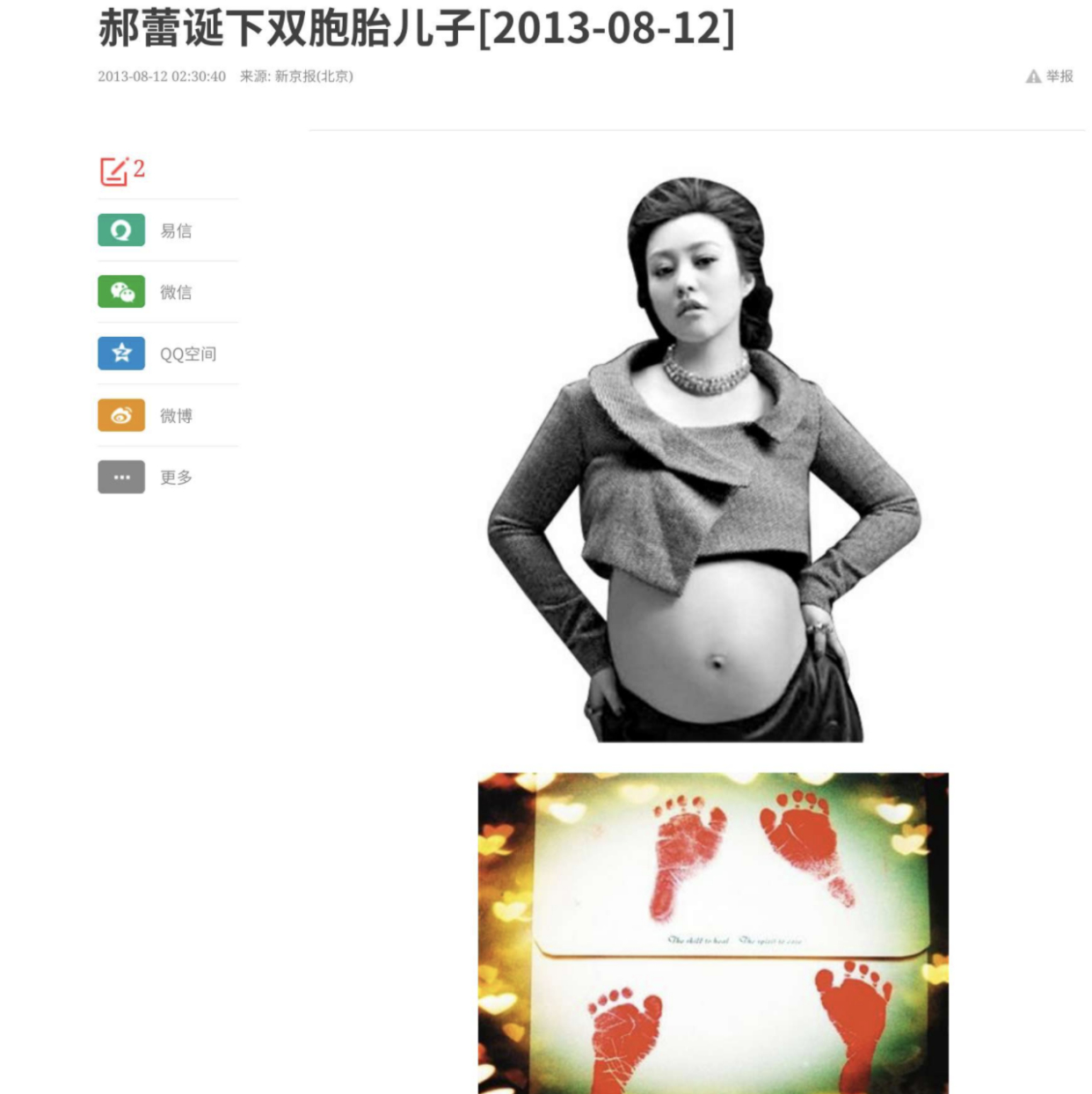 而郝蕾已经进入第二段婚姻,生了一对双胞胎。