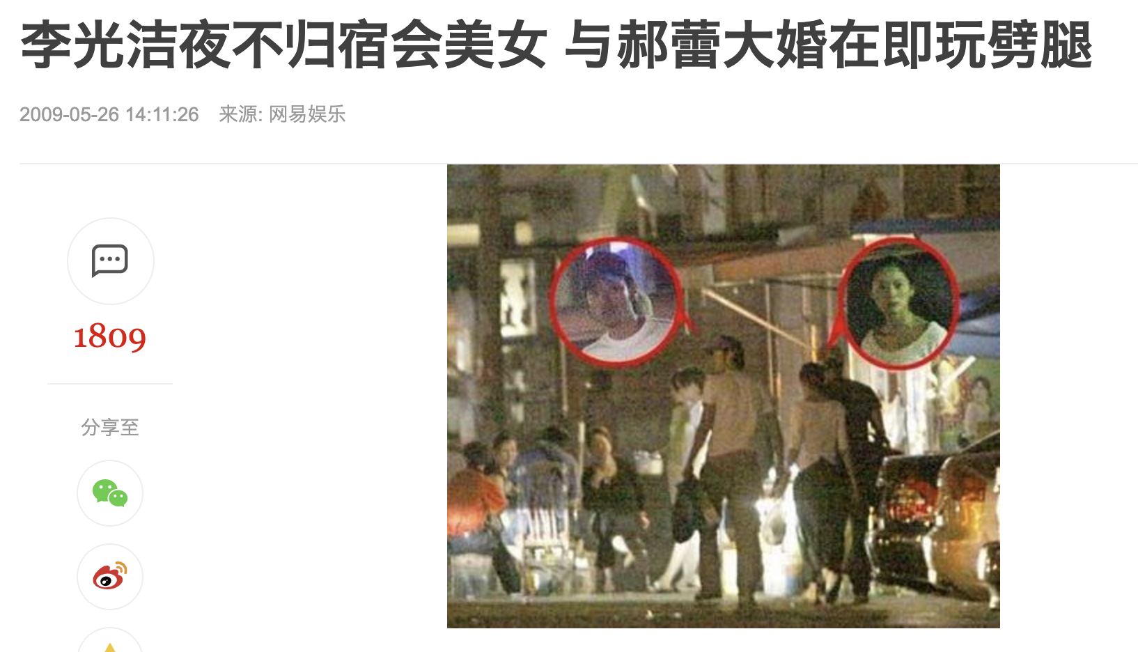 2009年5月底,李光洁被拍到和陌生女子逛街,被质疑出轨。