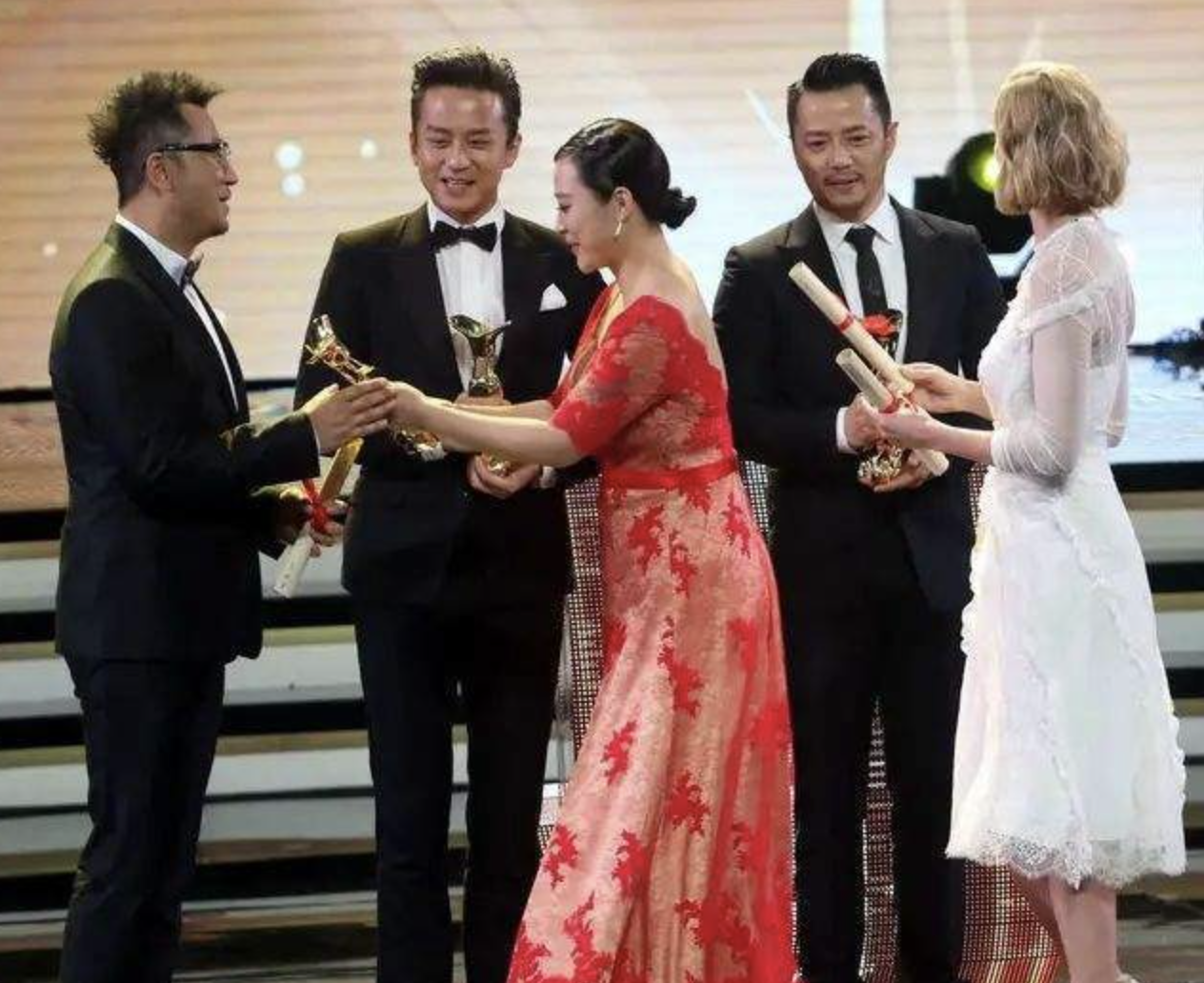 那一年,金爵奖颁奖典礼,郝蕾是颁奖嘉宾。当晚获奖的男演员有三个,分别是段奕宏,郭涛和邓超。