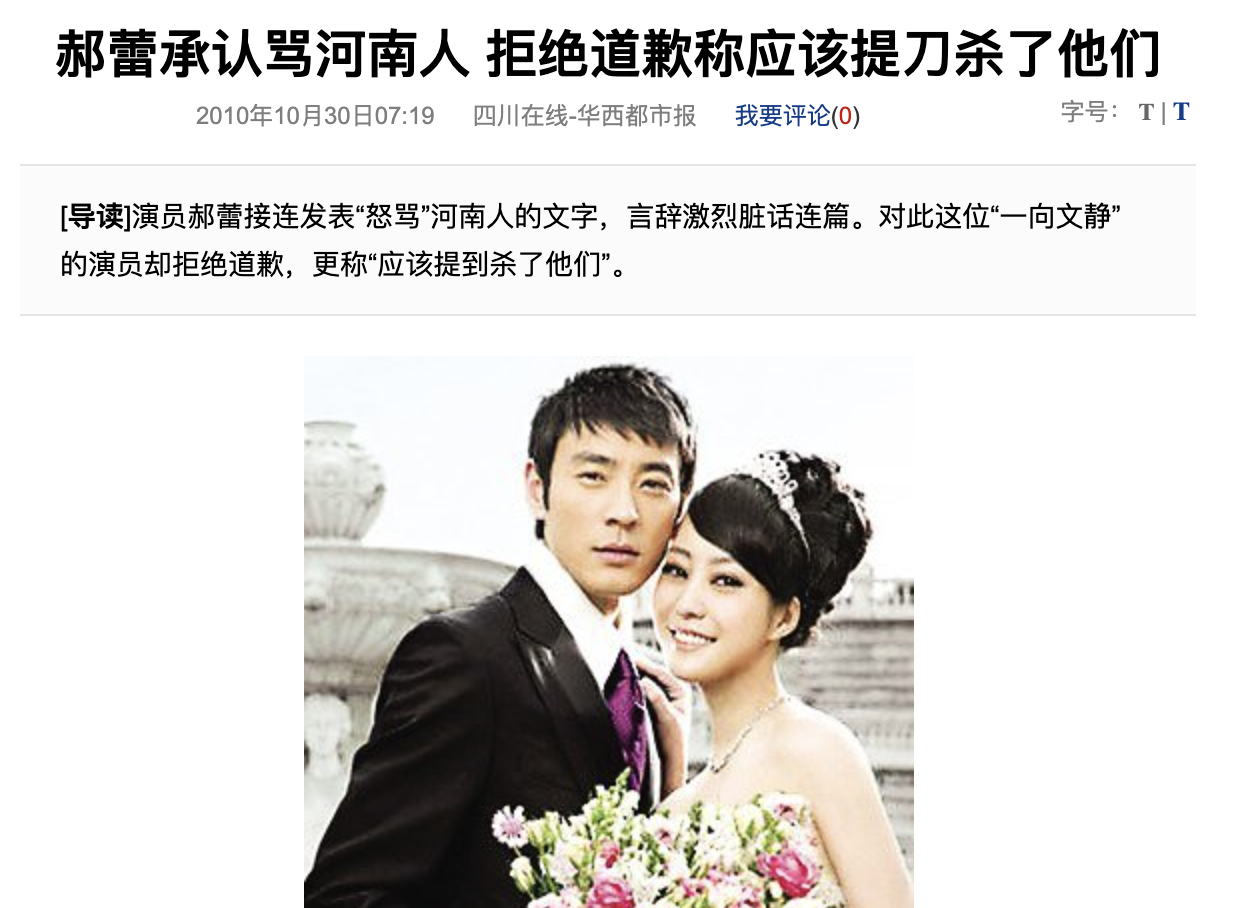 河南人也不是软柿子,怎么能让你这么骂。于是,无数网友开始围攻郝蕾。