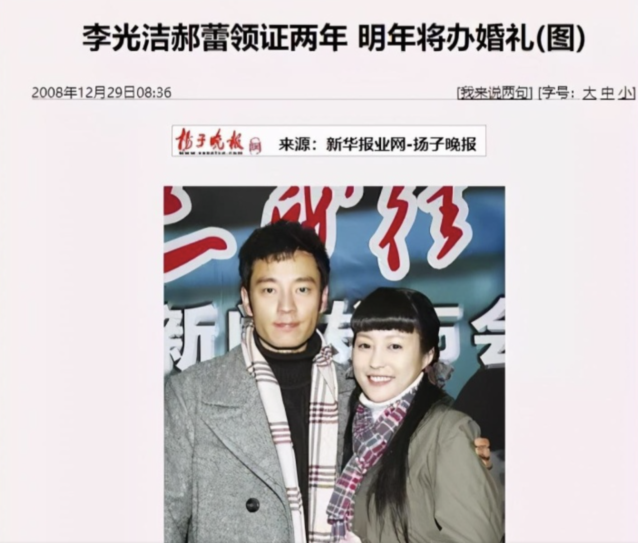 2008年,李光洁出演了首部电影《立春》,在发布会上,他承认和郝蕾领证两年,明年将办婚礼。