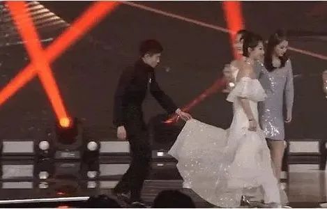一次晚会上,张一山跟在杨紫身后,为她拖着礼服长裙,怕她摔倒,是用心,也是真心。