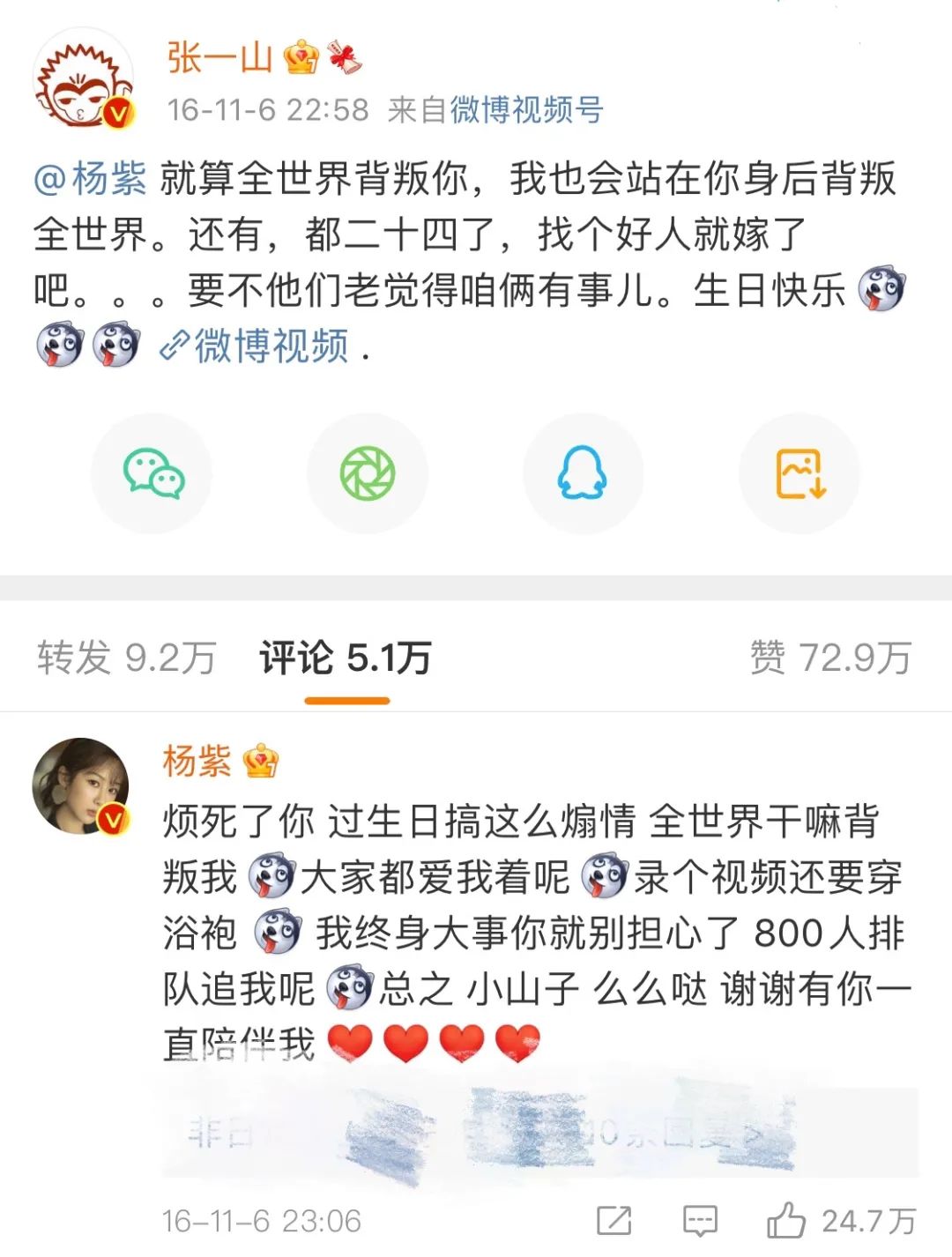 杨紫每年生日,张一山都会在第一时间送上真诚的祝福,从未间断:杨紫拍新电影,他立马转发宣传……