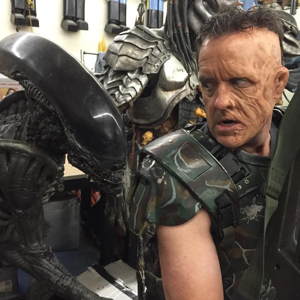 从这试妆照中可以隐约看到后面的铁血战士,目前还不清楚是否会跟铁血战士产生联动,虽然《异形大战铁血战士》已经出了两部,但是铁血战士却并不是主流承认的与异形同一世界观的物种,不知道这是否预示着在异形正史中对于铁血战士的引入。