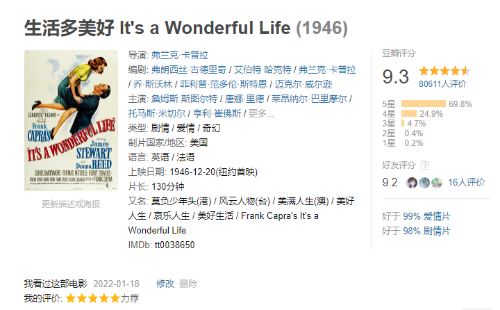 而这,就是乔治-贝利的人生遭遇,当然也只是一部分遭遇而已。