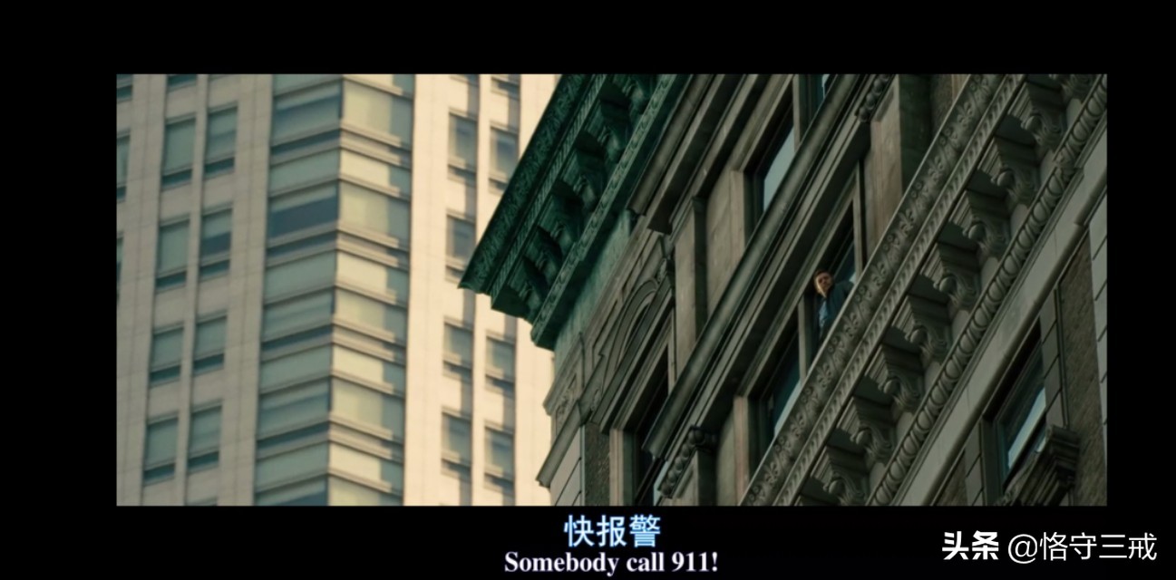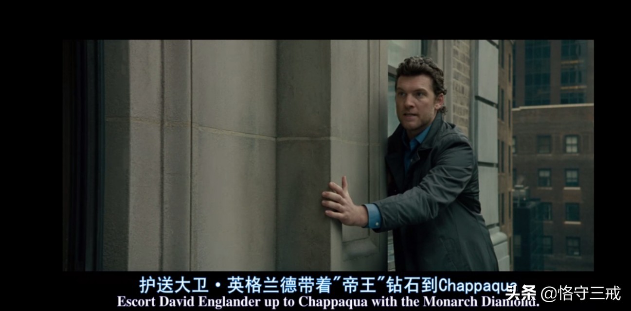 谁曾意识到这个站在纽约罗斯福酒店视野最好的2105房外墙壁边上作势要跳楼的男人,原来真实的目的就是要吸引警方与吃瓜民众的注意力。一场在纽约视野开阔的酒店外墙的惊险刺激的跳楼秀,一方面吸引了警力的注意,一方面恰准时间制造群众的尖叫来掩护弟弟要靠爆破潜入保险室去偷出被掩盖的罪证“价值连城的帝王钻”,再一方面借机向群众释放出自己被冤枉坐牢的原因,借助媒体的舆论来压制被巨额收买的纽约警局干预……最终让与警局合谋骗取巨保险的珠宝商老板与腐败的纽约警局全部捣毁
