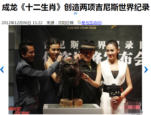 再加上吉尼斯送来的“表演特技最多的演员”认证,拍完《十二生肖》,成龙就拿到了两个吉尼斯世界纪录。