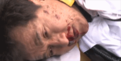 然后,成龙又撞到侧身,导致右眼出血,肩伤复发。