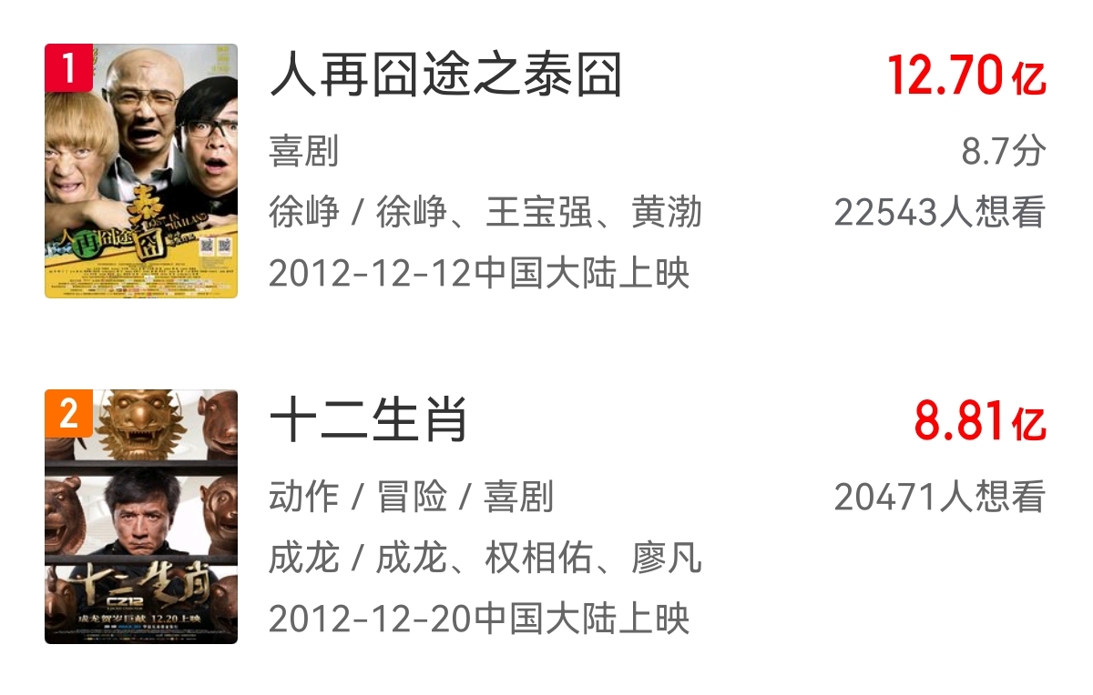 即使《十二生肖》只差一点也进入10亿大门,即使这一场票房突围成龙功高志伟,但在那个开垦的关键节点,唯一被铭记的胜者就只有徐峥。