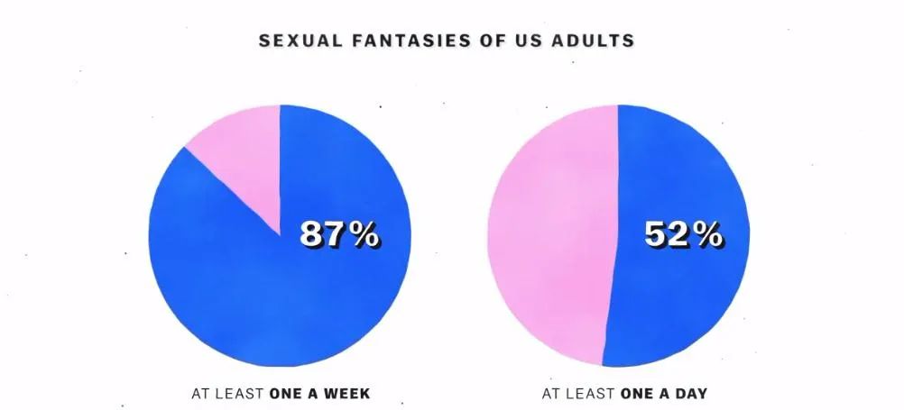 根据性学研究学家的调查,在美国,几乎每个成年人都产生过性幻想,其中87%的人每周一次,52%的人每天一次。
