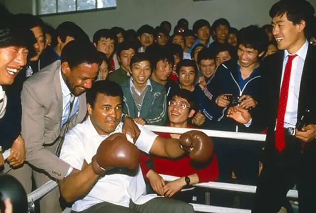 阿里职业生涯末期就开始游走世界各地进行演讲和助力慈善,1979年,阿里访问北京,在人民大会堂会见了邓小平同志,之后在83年和85年,阿里两次访问中国,并与中国拳手切磋交流。阿里的到来让中国停滞近三十年的拳击运动得以发展。新中国成立后,因为认为拳击运动野蛮暴力,拳击一度被禁止,直到八十年代才得以恢复,之后中国诞生出邹市明这样的奥运冠军,不能不说这也有阿里的一片功劳啊。