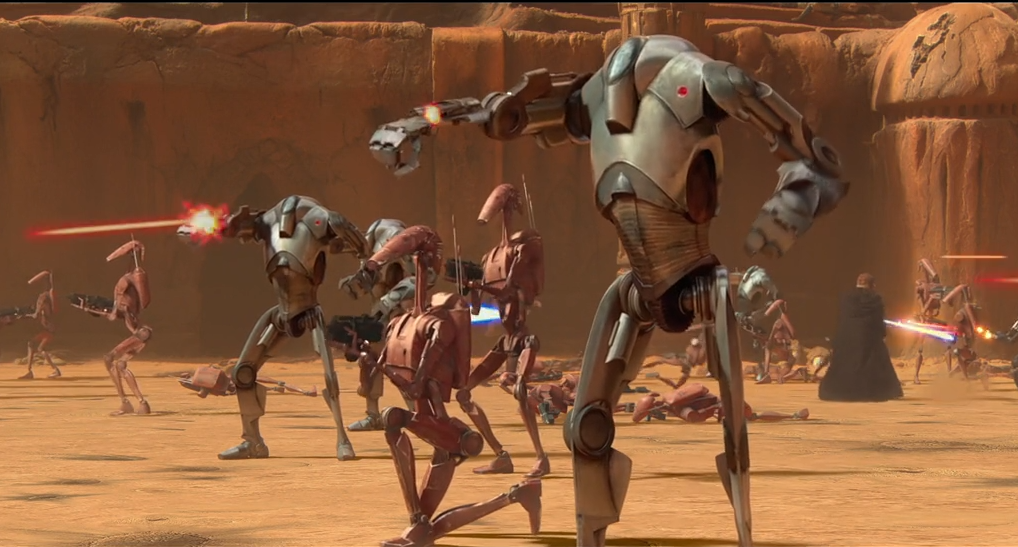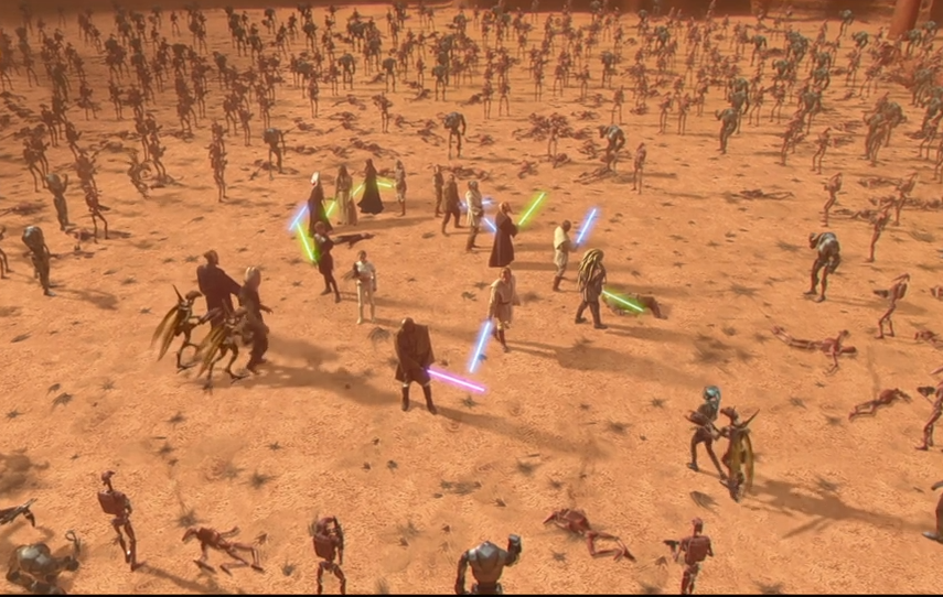 片中有很多微妙设计帮助观众区分善恶双方:共和国克隆人军队的移动都是从右往左,而分离主义份子则恰恰相反