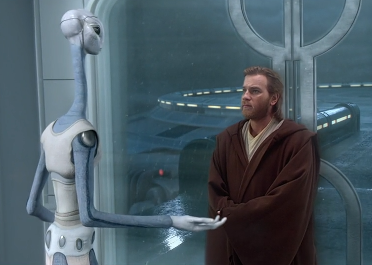 星球大战二与此同时, 欧比旺追查刺客行迹一路深入吉诺西斯星,发现了杜库伯爵的阴谋,自己却深陷囹圄。