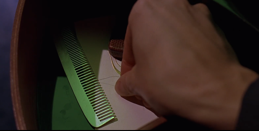 文森特把自己的头发交到艾琳手中,而艾琳像他一样,扔掉了头发。