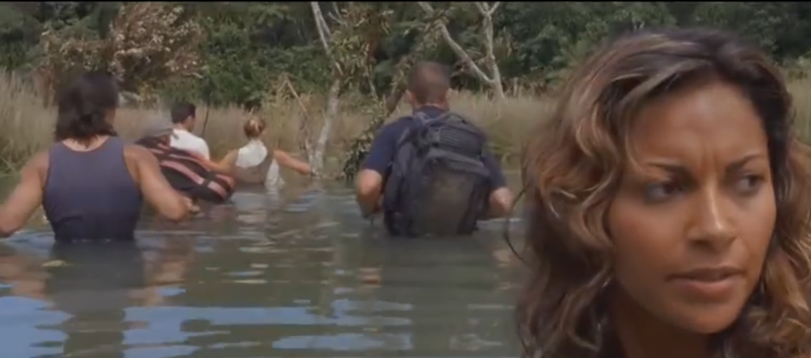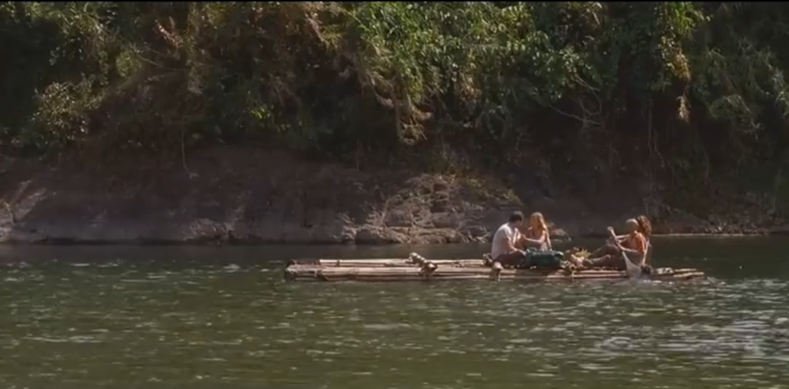 不过还没走多远,黑妹就不小心掉进了水里,更可怕的是,旁边正巧有只饥肠辘辘的鳄鱼,张着大嘴就想吃掉黑妹,好在大柱及时跳进水里拿一把匕首结果了这只两米多长的鳄鱼,至于人家为啥这么牛逼我也不知道,反正人家这么演咱就这么看!第二天清晨,大家从睡梦中醒来,他们发现渔船正在朝着一个瀑布驶去,而且引擎也不知道被什么东西卡住失灵了,所以大家一头就从瀑布上扎了下去,好在下边的水流不是很急,虽然船毁了,但至少人没事,大家清点了一下可用的东西就来到了岸边等待救援。大柱给朋友打电话希望借用朋友的船继续前行,但是他们必须穿过眼前的这片丛林才能跟丛林对面的朋友会和。