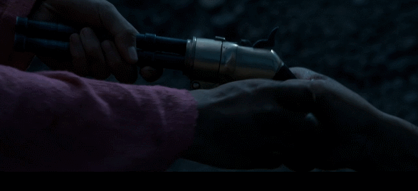 而“三枪”对这段场景的处理就张狂许多,李四将人物胆小怕事的尿性展露无疑。在埋尸那场戏中,《血迷宫》的老板手里那把枪是没有子弹的,但在李四手里,它开出了“三枪”的第二枪,彻底将老板送走。