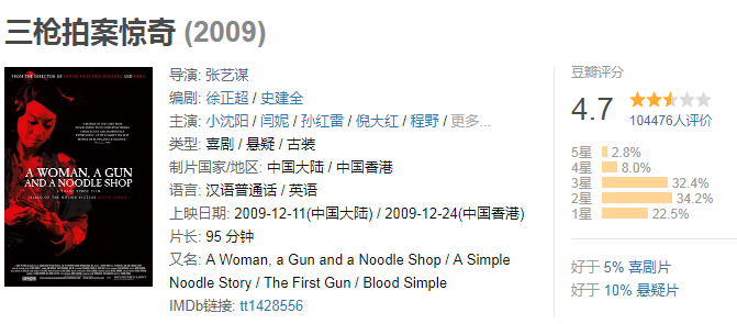 但最终,“三枪”换来的是:“庸俗”、“无聊”、“加长版小品”,以及4.7分的差评,沦为“烂片”。