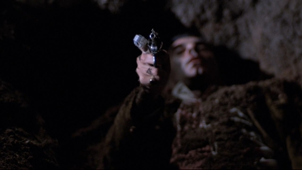 侦探前脚刚走,男人后脚就来酒吧,想找老板沟通感情问题,却意外发现对方已经凉了。本着要带情人远走高飞的承诺,男人清理了现场,还将侦探留在现场的手枪装进老板的兜儿里,然后将他的尸体搬上车,拉去野外刨坑埋了。谁知老板没死透,在坑里蠕动求生,并从兜儿里摸出了手枪。