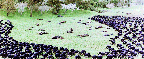 电影里:自带不死特效的主角们在看到尸横遍野的战场后,心生感慨道“我们真是幸运啊。”、“我们一定要活下去啊。”而敌军肯定会杀得只剩下一个或者有几个苟延残喘的想要逃走。