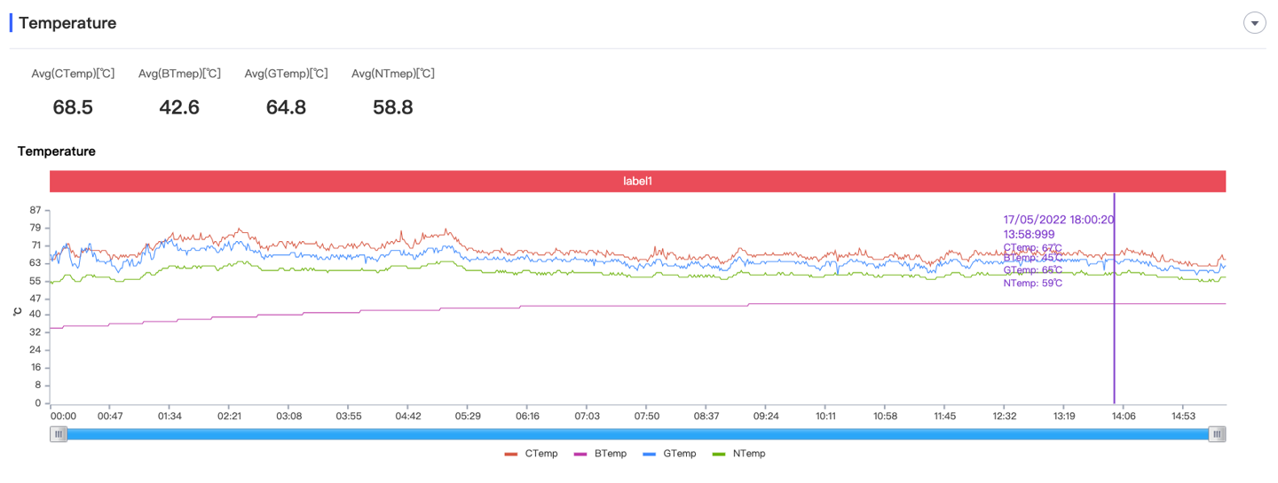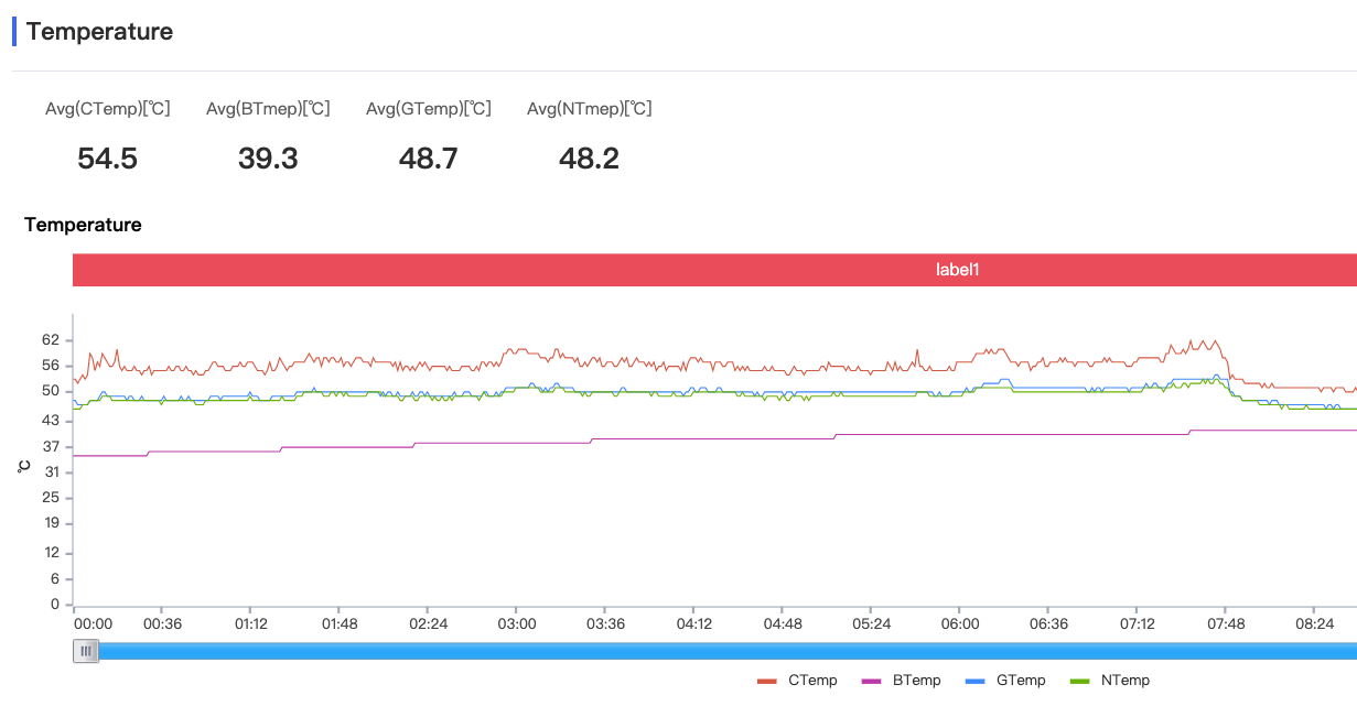 再来看一下核心温度,其中核心平均温度为 54.5°c。
