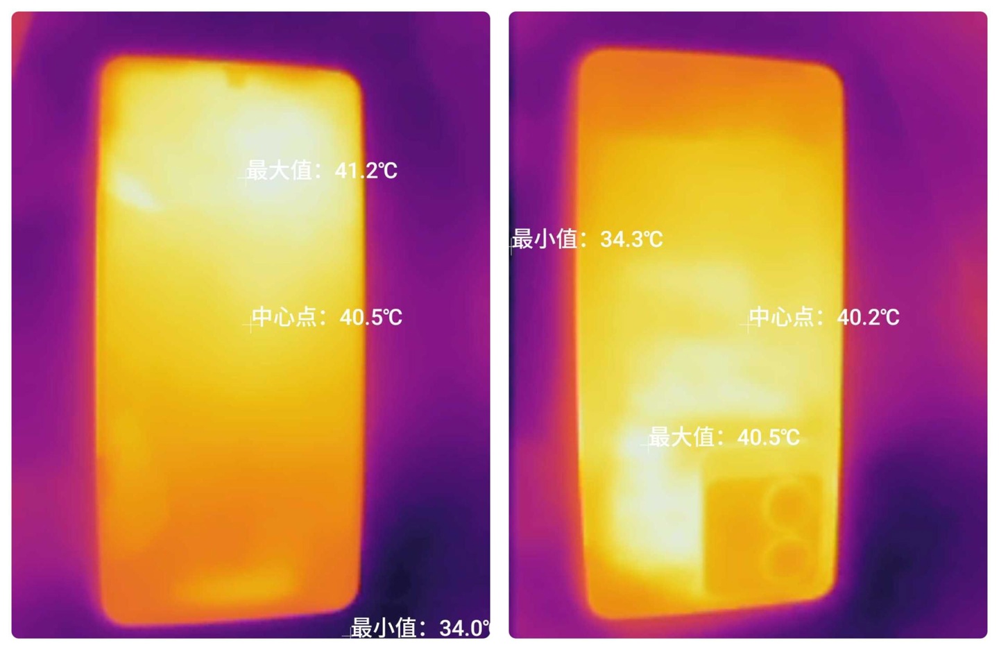 而在体验方面,手机的温度仍仅仅是温热,通过测温计测得最高温仅为 41.2°c 出头。