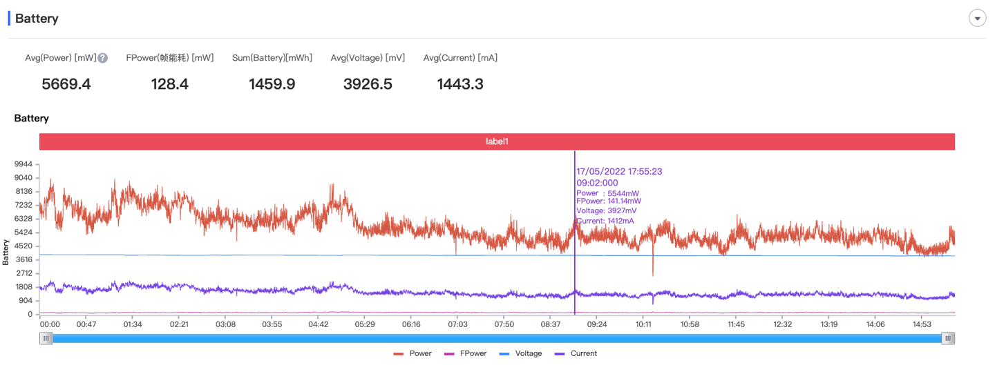 功耗方面,vivo s15 达到了 5.669w,fpower (帧能耗) 为 128.4mw。