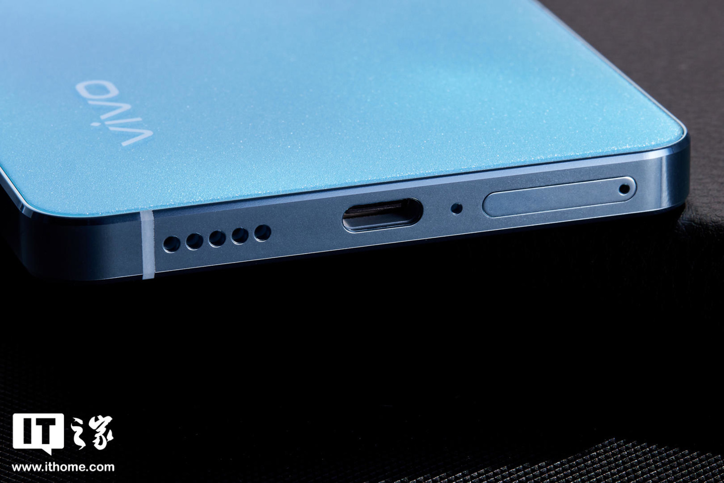 vivo s15 右侧是电源键和音量键,底部是熟悉的 sim 卡槽、充电口、扬声器、麦克风开孔。