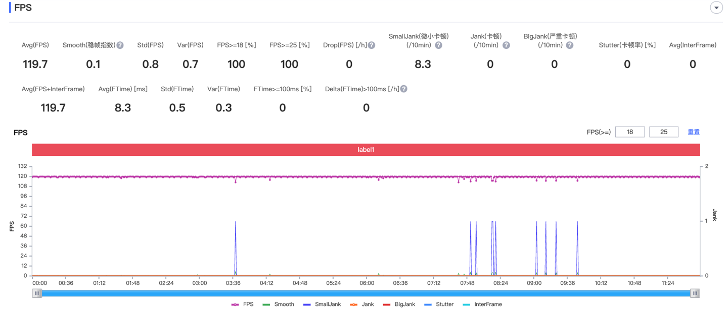 如上图所示,游戏始终维持在 120 帧左右,帧率波动情况几乎可以忽略不计。