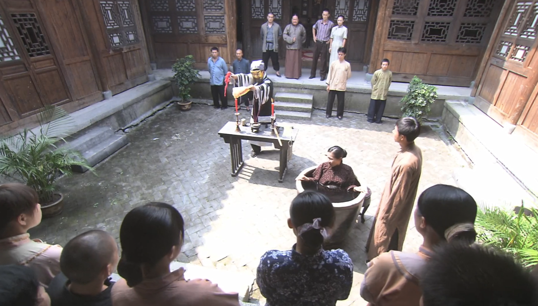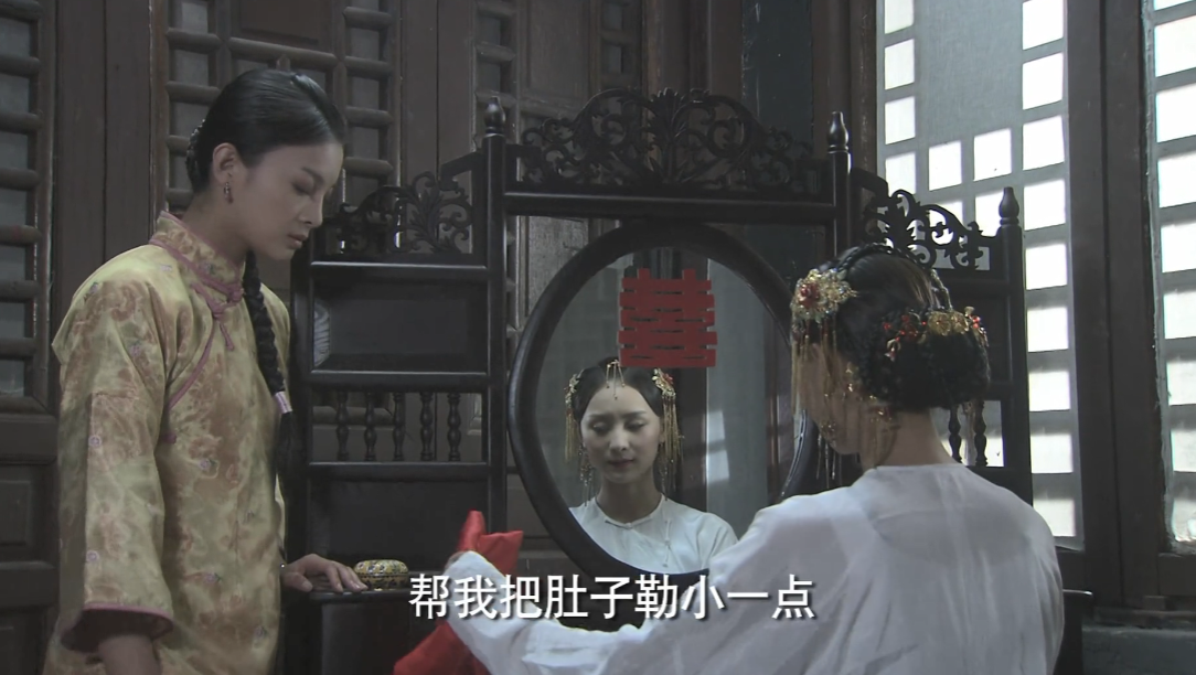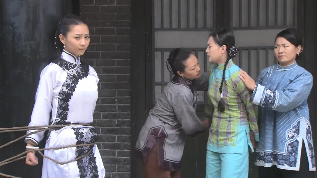 她们用力拉着一条白布,企图用这样的方式,打掉唐婉肚子里的孩子。