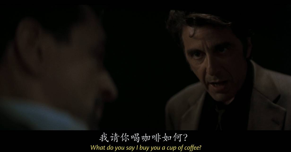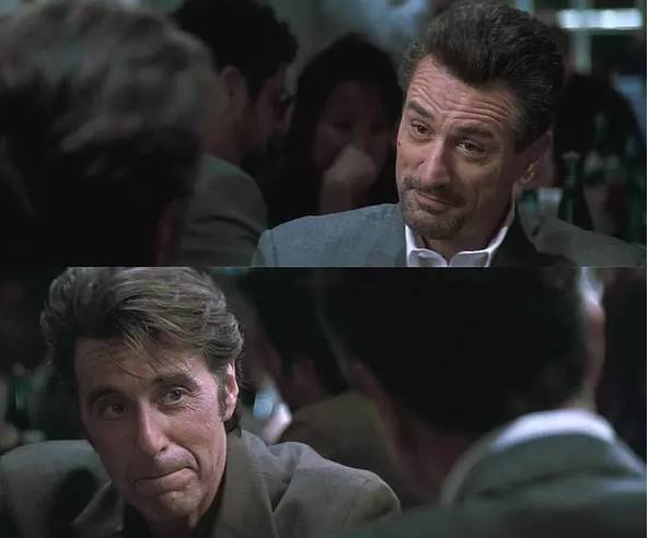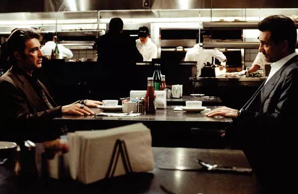 就在尼尔准备打劫银行的前夜,一正一邪如兄弟朋友般坐在咖啡馆聊天,其中有威胁,有试探,但更多的是惺惺相惜。