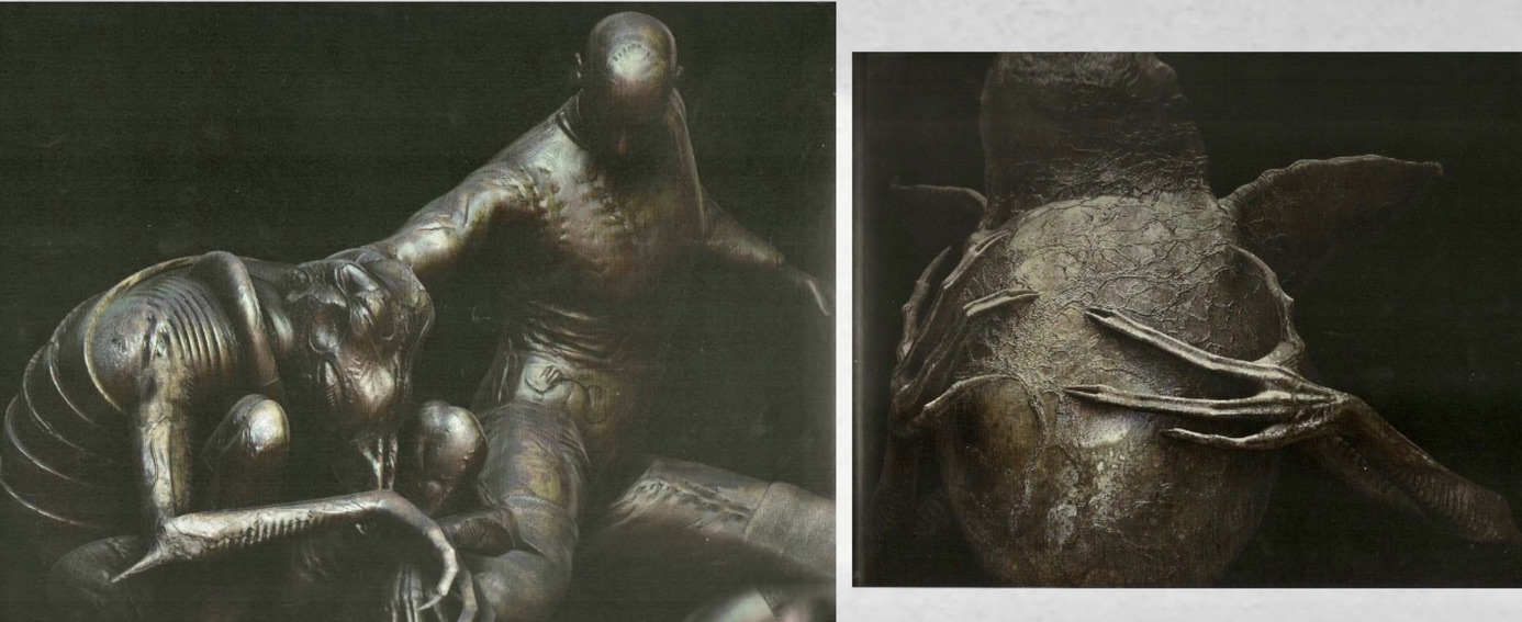 墙上的油画在电影中看得不清楚,事实上应该是这么一幅画,手指已经变异的工程师端着一个抱脸虫,这么一来情况已经相当清楚了,工程师早就知道抱脸虫存在,还进行过深入研究。
