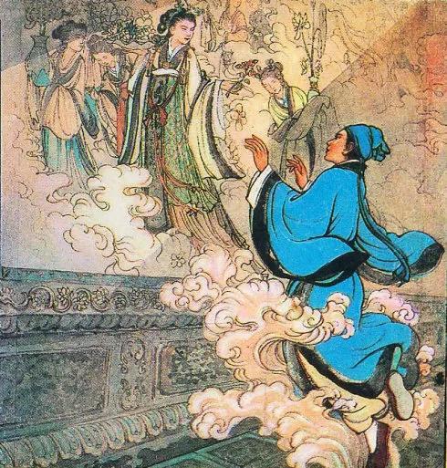 佛殿中供奉着一尊志公的神像,两侧壁画精妙绝伦,人物栩栩如生。东墙上画着散花天女,里边有个梳着少女发型的仙女,手举鲜花,面带微笑,嘴唇似乎要开口说话,水灵灵的眼睛,像流动的泉水。朱生目不转睛地看了许久,不由得神摇情动,失魂落魄,恍恍惚惚,想入非非。他的身体忽然轻飘飘地飞了起来,好像腾云驾雾,转眼间已降落到墙壁上。只见这里殿阁重重、楼台层层,不再是人间的样子。一个老和尚正坐在佛殿上讲经说法,许多披着袈裟、袒露右肩的和尚团团环绕着他,朱生也随便站在那些听众里边。