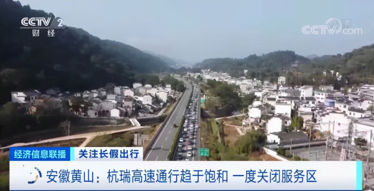 昨天上午,安徽黄山境内的杭瑞高速迎来车流高峰,日车流量激增到4万多辆,针对大幅增加的车流量,交警部门采取临时关闭服务区等措施,多措并举,缓解高速上的交通压力。