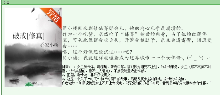 而简小楼,就像作者说的,是个成长类型的女主,脾气爆,喜欢怼人。但是也有自己的优点,比如坚守自己的道,遇到不义之事会帮忙,即使锅是由素和背的,哈哈哈……