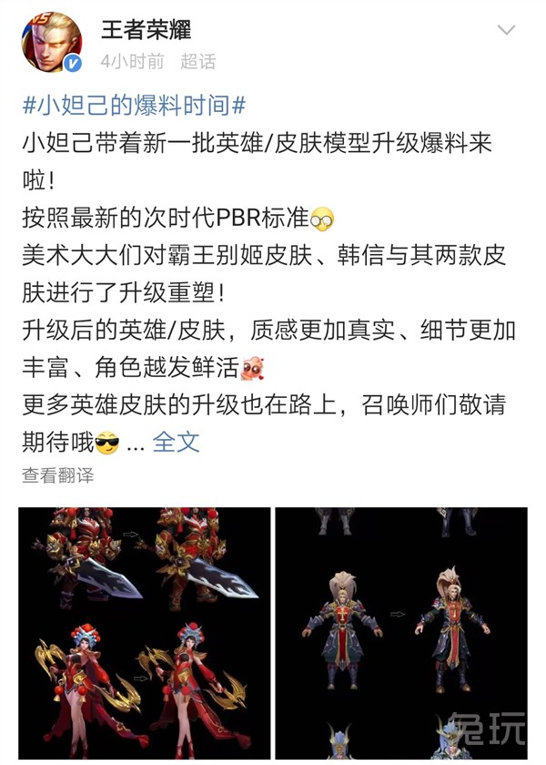 随着版本的更新,王者荣耀的英雄以及皮肤数量到了较大的规模,新皮肤、新英雄的原画模型品质也比以往提升了很多。不过由于版本更替原因,旧款英雄和皮肤在众多新颖的皮肤英雄下显得黯然失色,王者官方也针对“过时”的英雄、皮肤进行了一系列的美术优化,由于需要优化的英雄皮肤太多,因此按照优先级排期。近日,官方亲自爆料霸王别姬、白龙吟等皮肤进行了优化,并且发出进度图,玩家直呼良心!