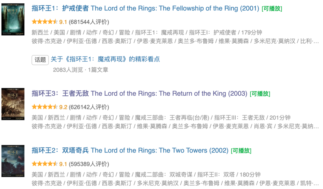 20年过去,三部曲的豆瓣评分仍然保持封神级别的9分+。