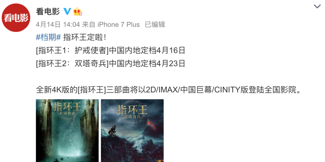 《指环王》三部曲定档消息一出,影迷狂欢,各大电影博主仿佛过年,喜大普奔告诉所有人。