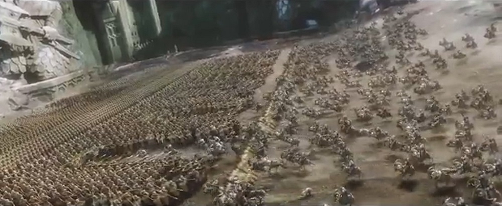 此时山坡上几个巨粗大的钻地虫破土而出,大批兽人涌出。山峰的最高处,阿佐格出现,指挥兽人军队向他们展开攻击。矮人和精灵虽然互不喜欢,但都更恨兽人。三股势力混斗到了一起。