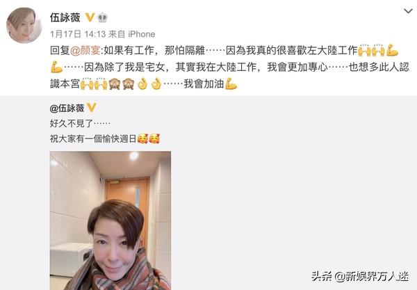 在社交媒体上,伍咏薇仿佛解放天性一般,坦言自己十分享受现在的状态,在内地工作会让自己更为舒适,她也想尽量拓展在内地的人气。