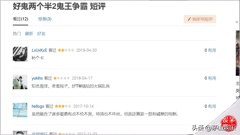 到了2017年,孟智超主演了2部电影:《撩妹宝典》和《好鬼两个半2鬼王争霸》,说实话,一看这片名,基本上就没有想去看的冲动了。果不其然,前一部豆瓣上查不此片,亦没有百科;至于后一部嘛,豆瓣上总共产生了12条评论,画风是这样的:“知名鬼怪,老套段子,好tm尴尬的大锅乱炖”、“容我吐一吐先”,大伙自己品品吧。