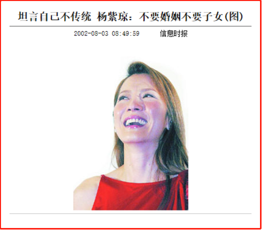 随后,杨紫琼多次公开发言称:不要婚姻,不要子女。