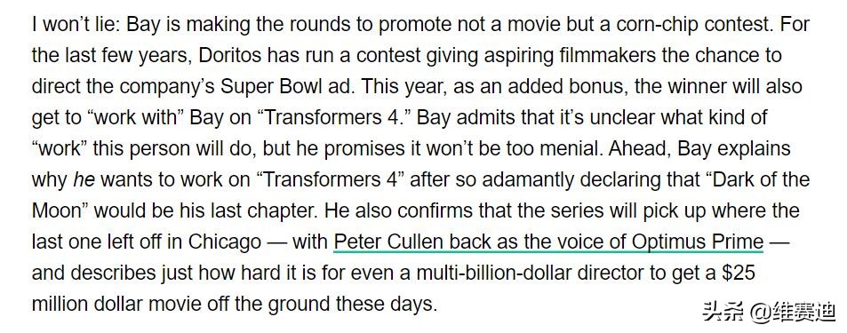 但前提是,你必须得给我们继续拍《变形金刚3》。